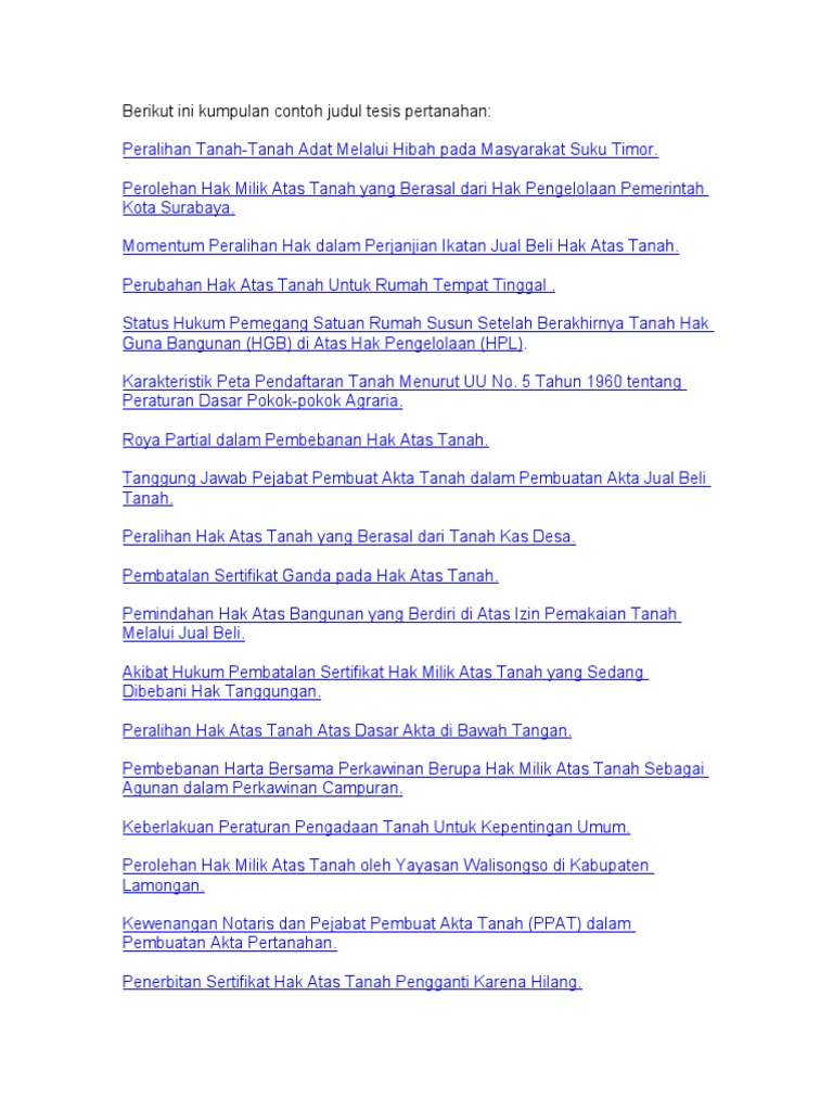 Contoh Judul Tesis Pertanahan