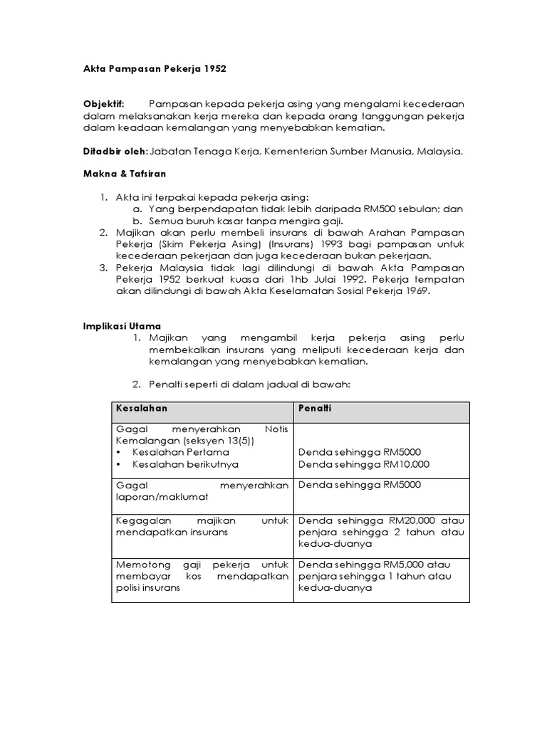 Akta Pampasan Pekerja 1952 Pptx Akta Pampasan Pekerja 1952 Ditadbir Oleh Jabatan Tenaga Kerja Kementerian Sumber Manusia Malaysia Nama Ahli Muhammad Course Hero