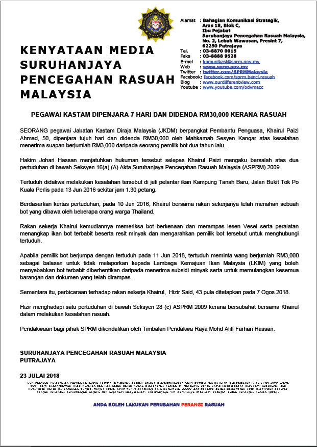 Putrajaya peruntukan undang undang baharu seksyen 17a akta suruhanjaya pencegahan rasuah malaysia sprm 2009 pindaan 2018 yang memperuntukkan kesalahan rasuah oleh organisasi komersial mula berkuat kuasa hari ini. Rekod dan laporan 6. Adakah kamu hendak mengatakan apa apa. Akta suruhanjaya pencegahan rasuah malaysia 2009.
