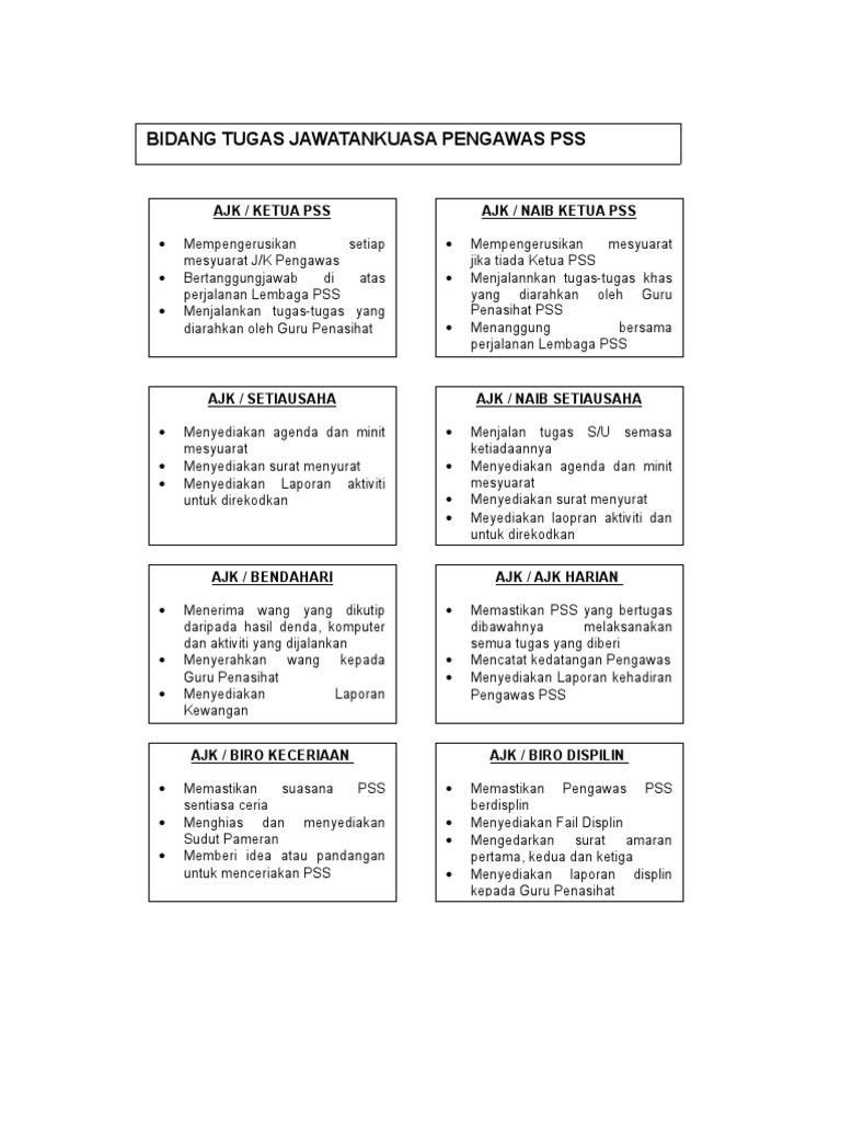 Bidang Tugas Ajk Pengawas Pss
