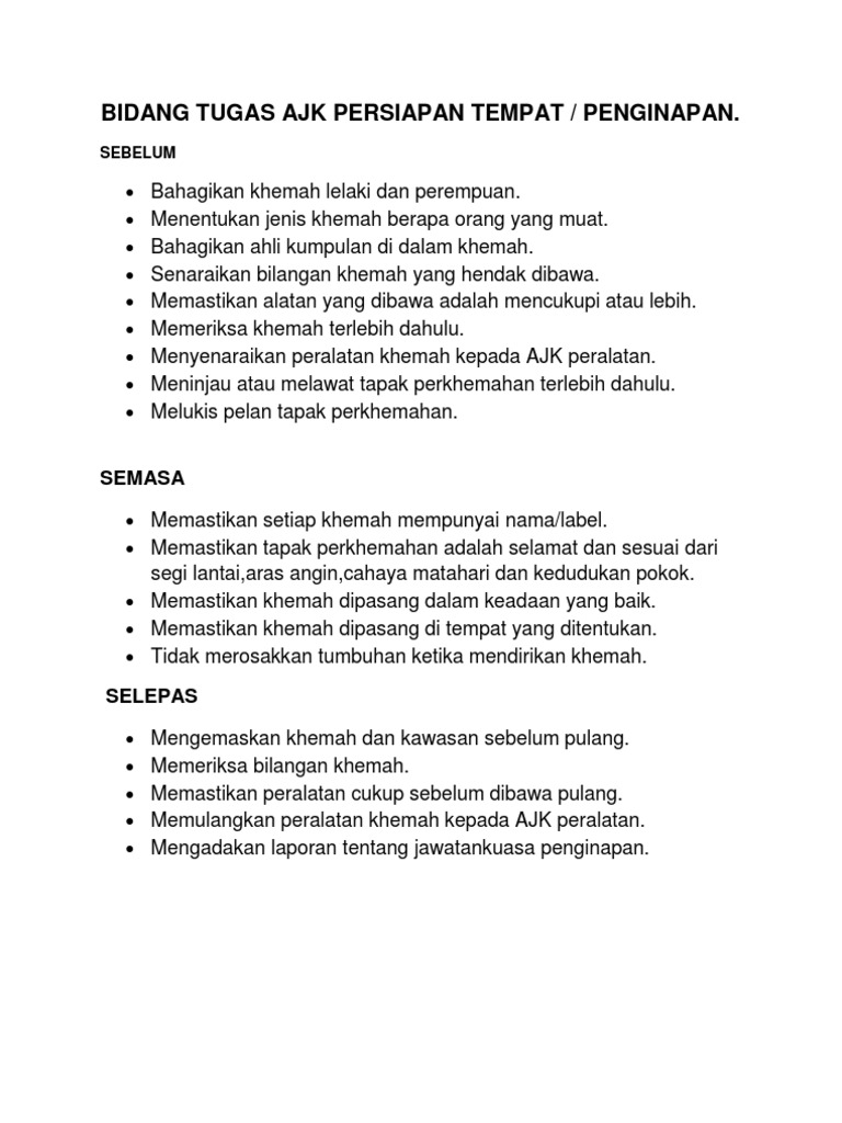 Bidang Tugas Ahli Jawatankuasa Persiapan Tempat