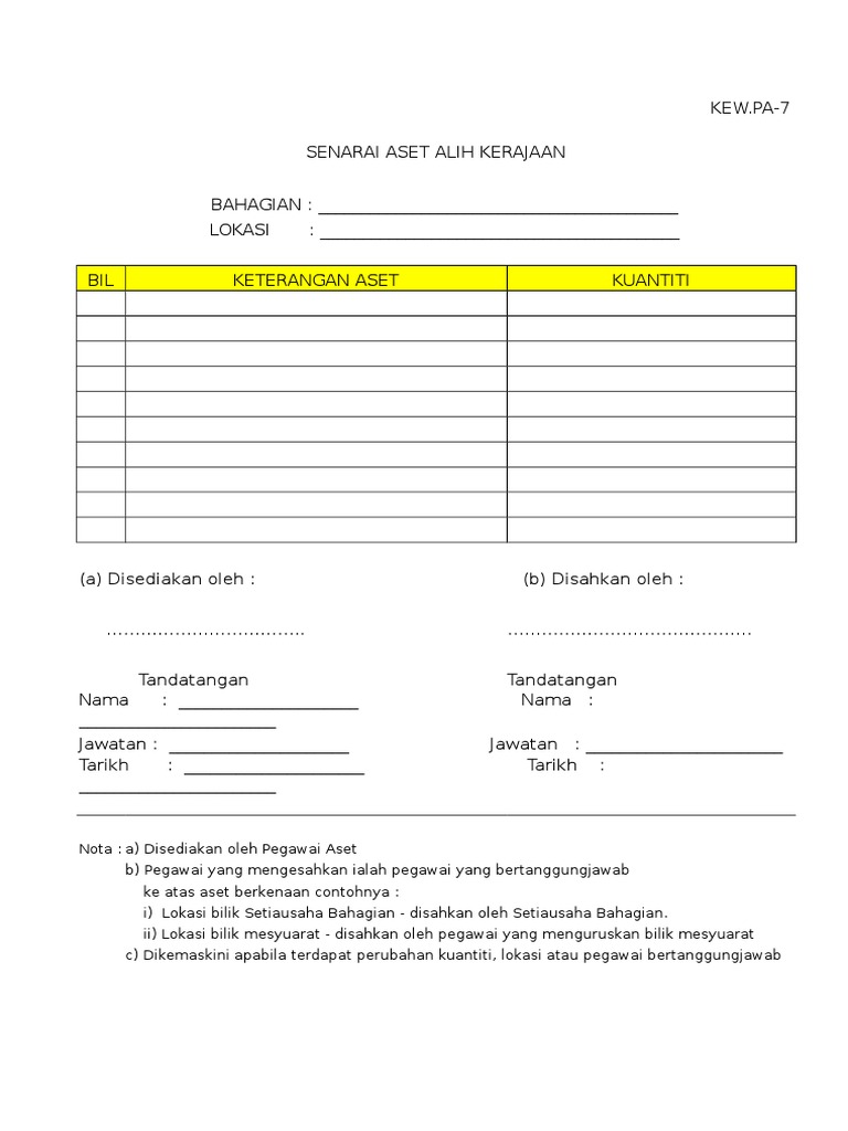 7 Kew Pa 7 Senarai Aset Di Lokasi Doc Pekeliling Perbendaharaan Malaysia Am 2 3 Lampiran E Kew Pa 7 Senarai Aset Alih Kerajaan Bahagian Lokasi Bil Course Hero