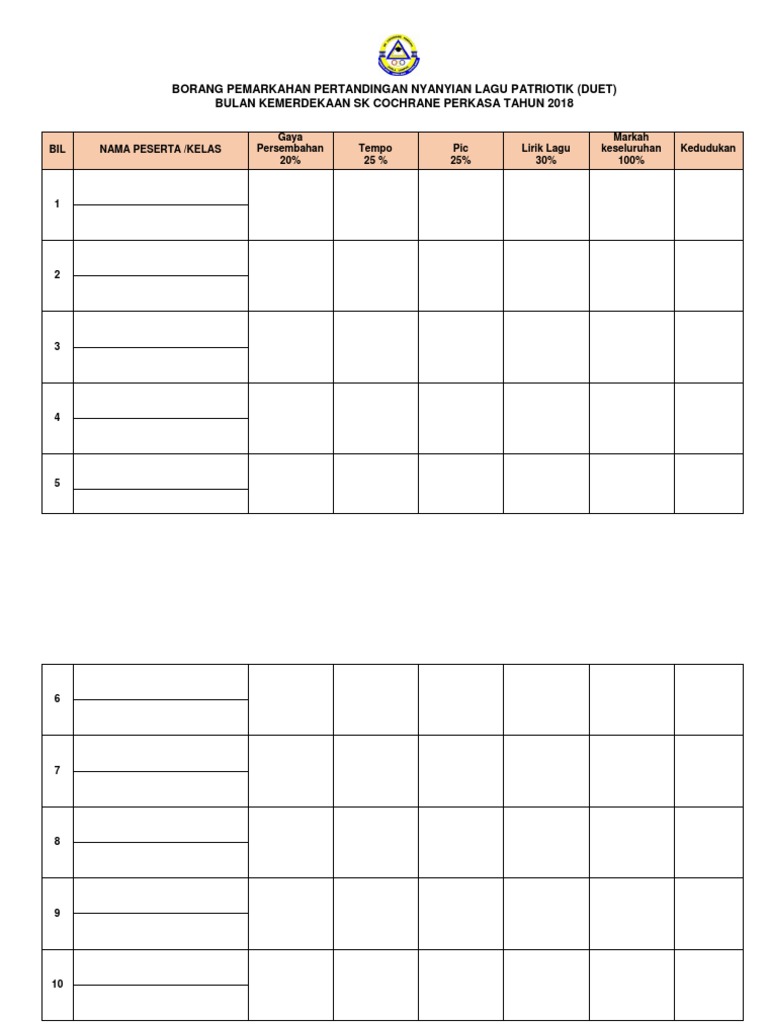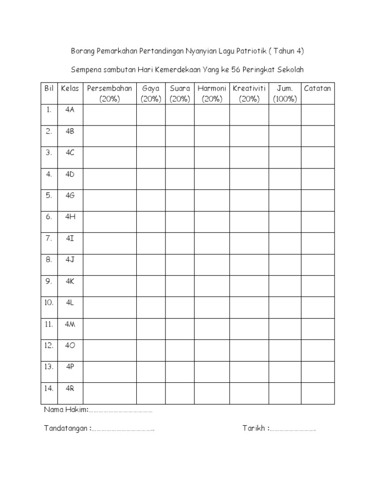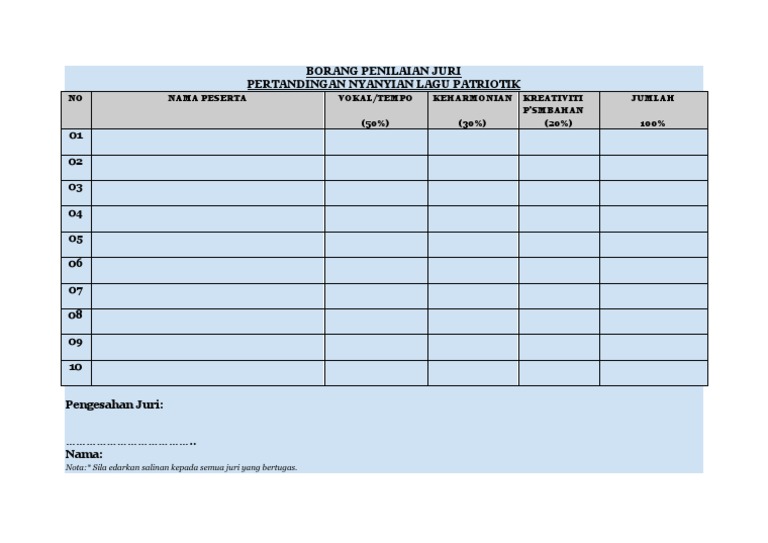 Borang Markah Pertandingan Nyanyian Patriotik New Docx