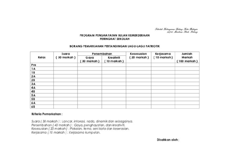 Borang Pemarkahan Pertandingan Nyanyian Lagu Patriotik Docx
