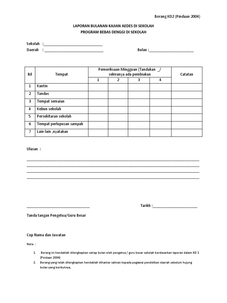 Borang Laporan Mingguan Dan Bulanan Bebas Denggi Docx