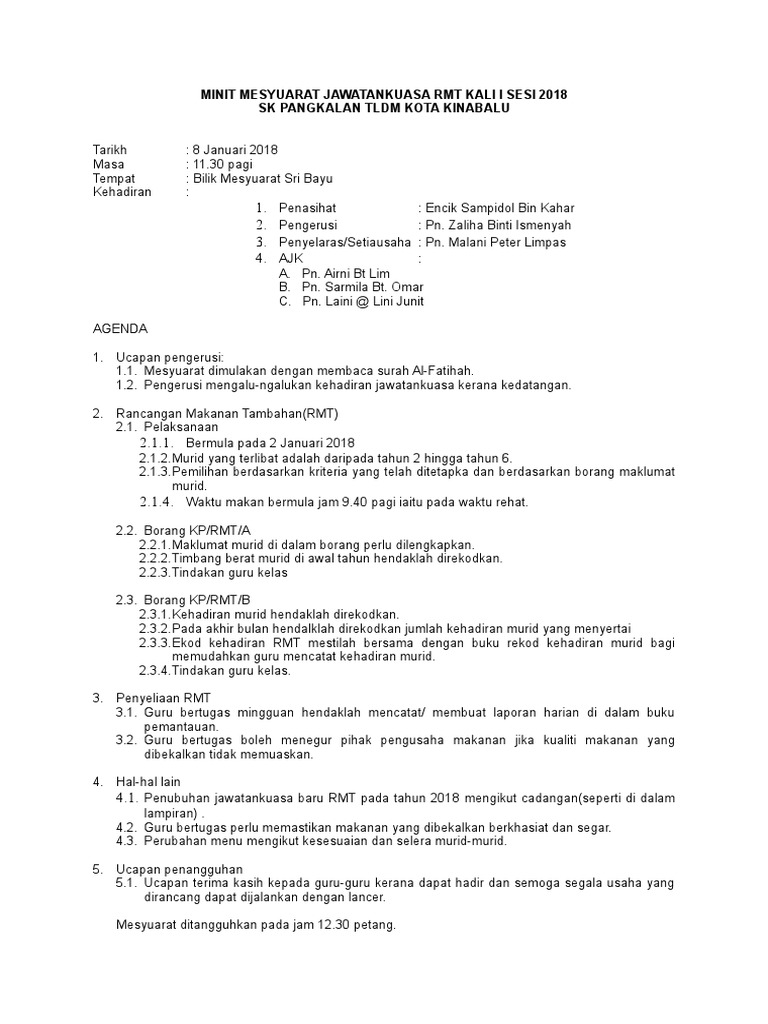 Contoh Bahan Minit Mesyuarat Hal Ehwal Murid Sekolah