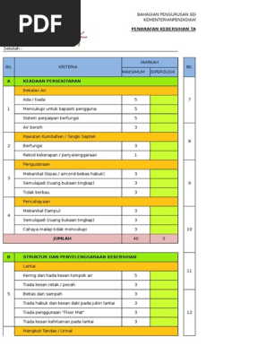 Penarafan Kebersihan Tandas Sekolah Pdf