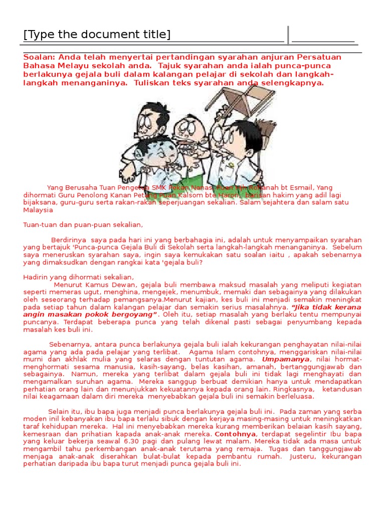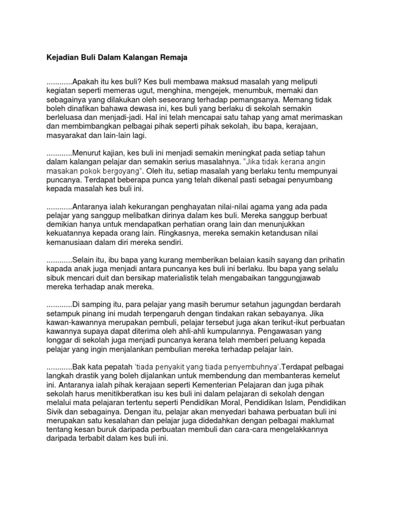 Kejadian Buli Dalam Kalangan Remaja Pidato