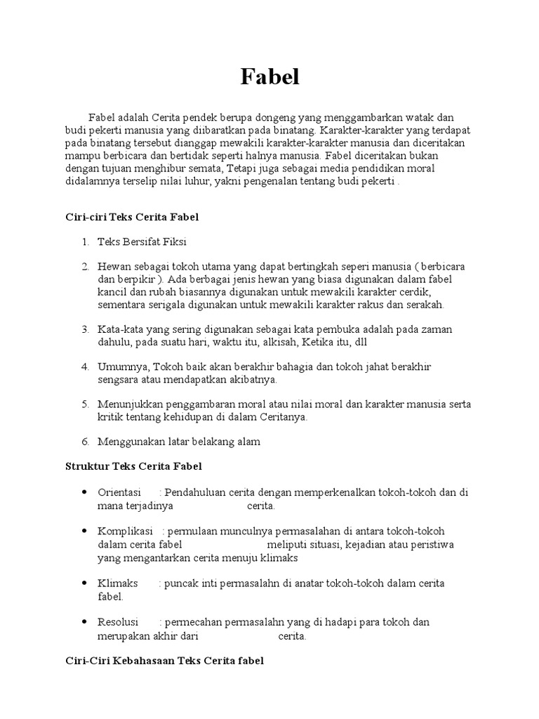 Contoh Fabel Kelas Vii Smp