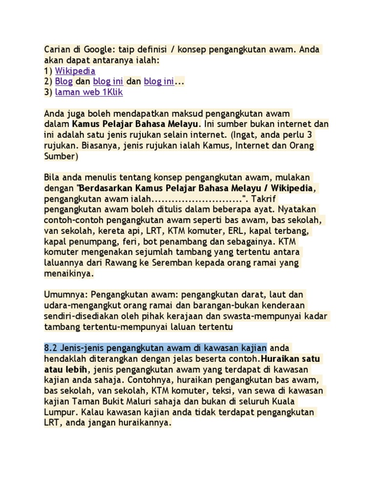 Contoh Jawapan Tugasan Geografi Pt3 2016 Pengangkutan