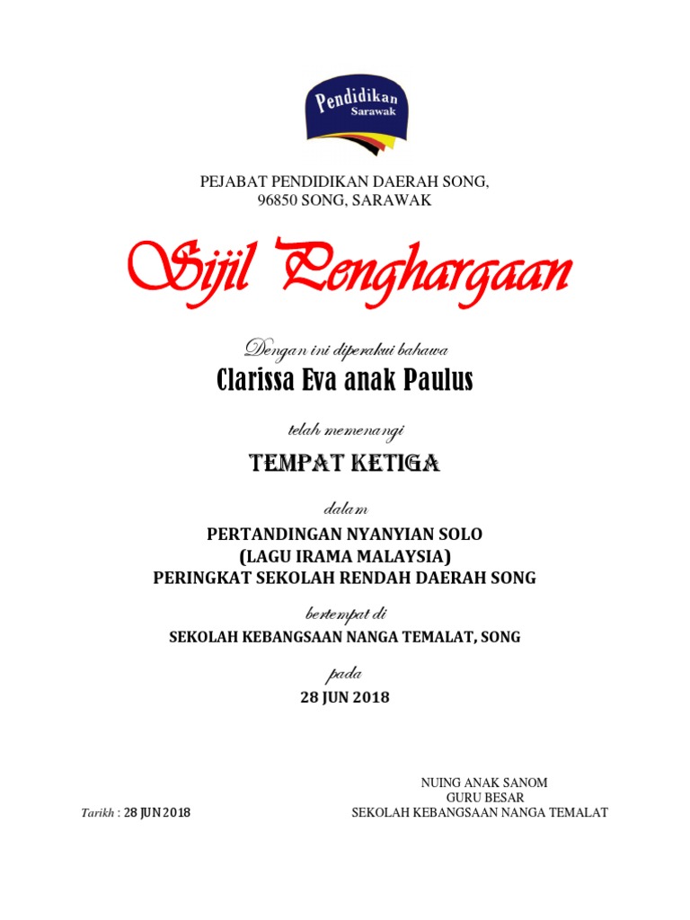 Contoh Sijil Penyertaan Pertandingan Sekolah