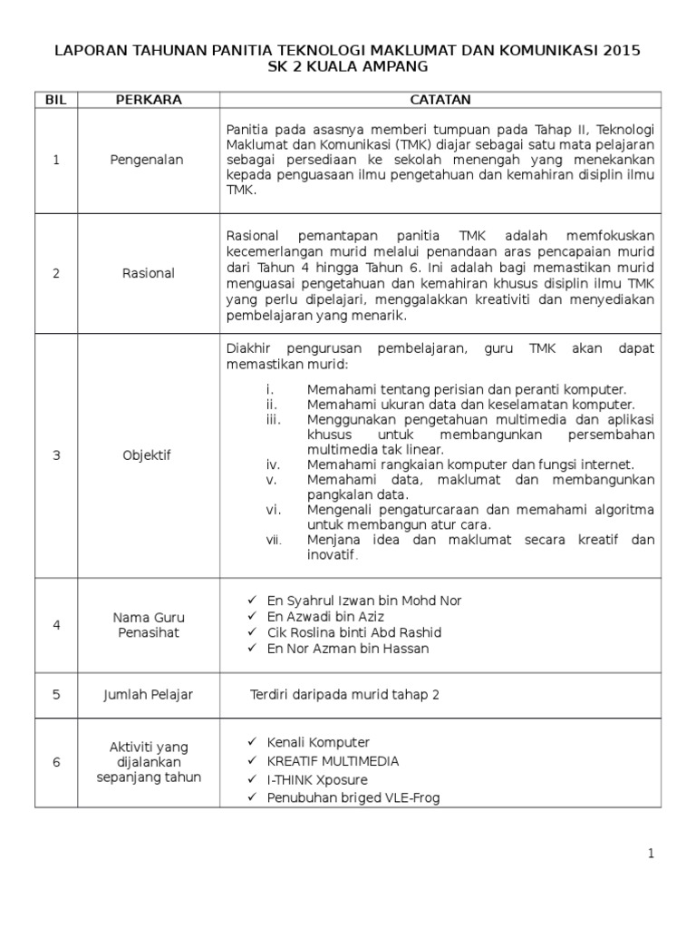 Laporan Tahunan Panitia Teknologi Maklumat Dan Komunikasi 2015