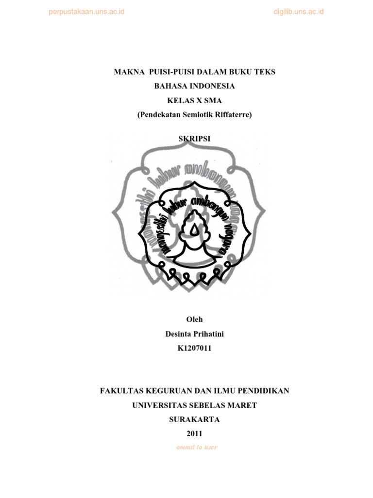 Makna Puisi Puisi Dalam Buku Teks Bahasa Indonesia Kelas X Sma Pendekatan Semiotik Riffaterre
