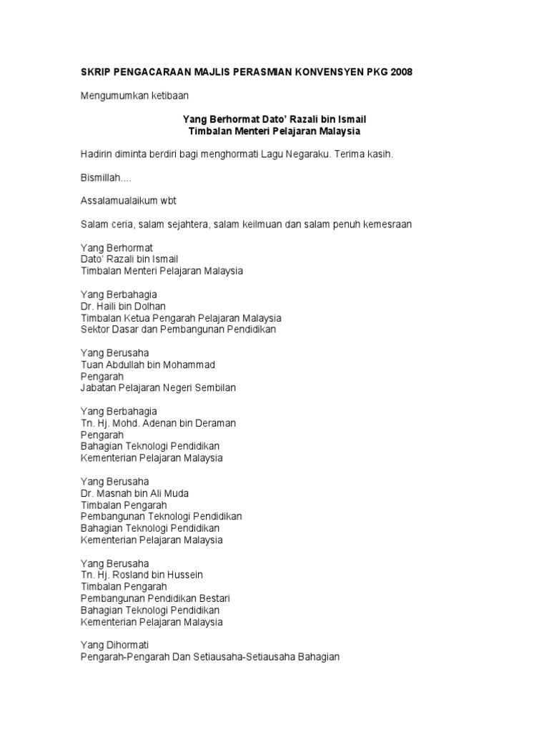 Skrip Pengacaraan Majlis Perasmian Konvensyen Pkg 2008