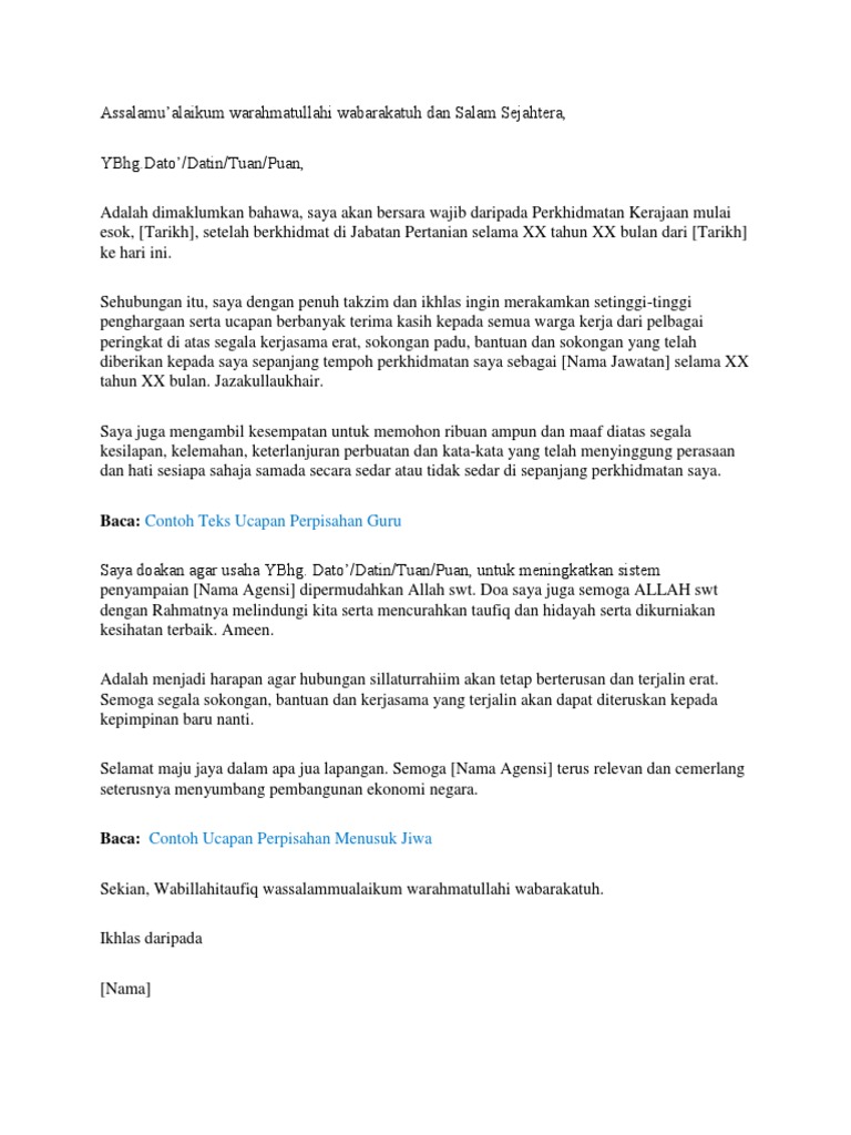 Contoh Ucapan Persaraan