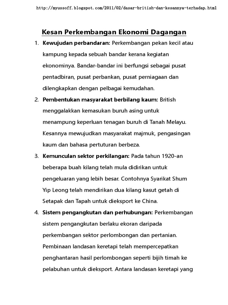 Dasar British Dan Kesan Kepada Ekonomi Sejarah Bab 10