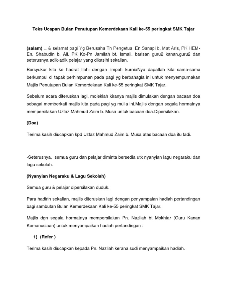 Teks Ucapan Bulan Penutupan Kemerdekaan Kali Ke