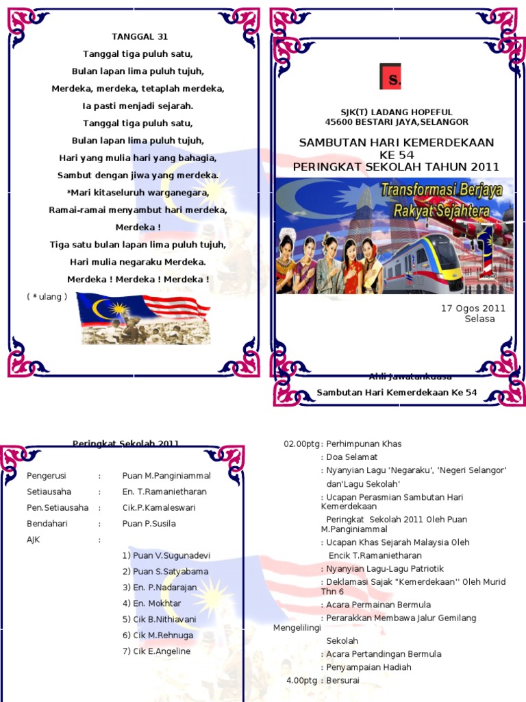 Kertas Kerja Sambutan Kemerdekaan Peringkat Sekolah