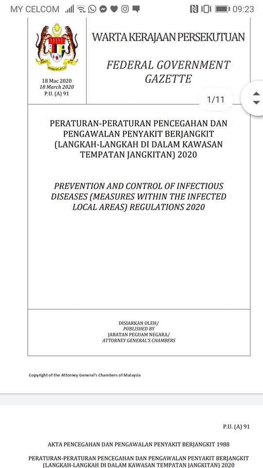 Bernama Tv On Twitter Federal Government Gazette Prevention And Control Of Infectious Diseases Measures Within Infected Local Areas No 6 Regulations 2020 1 3 Https T Co Ssljqlnrry