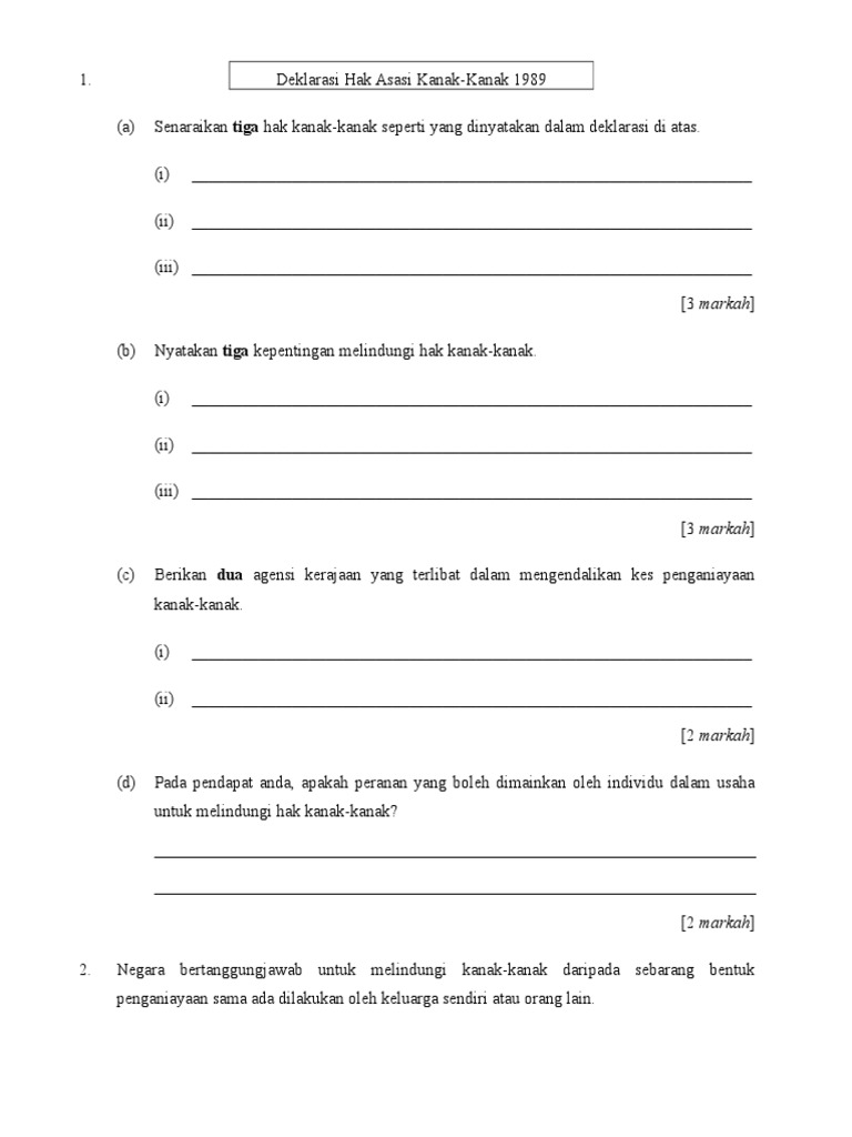 Pendidikan Moral Soalan Aras Sederhana Bidang 5 Hak Asasi Manusia
