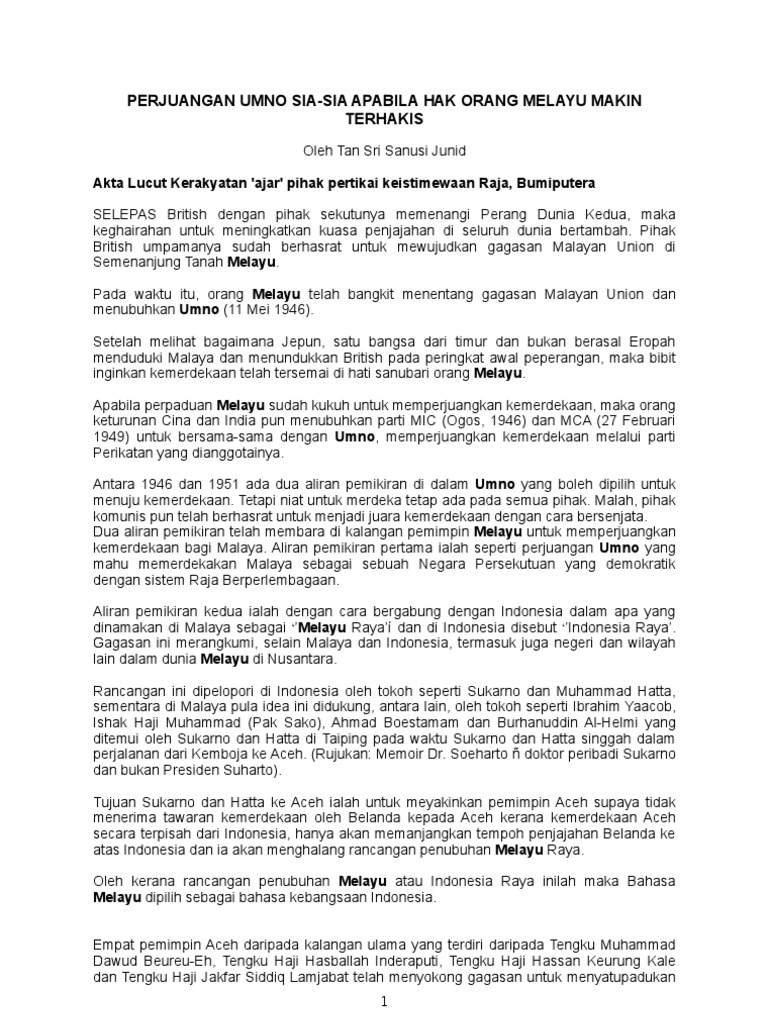 Hak istimewa orang melayu pdf. Perkara 160 mendefinisikan orang melayu sebagai seseorang yang menganuti agama islam lazim bercakap bahasa melayu menurut adat istiadat melayu dan a lahir sebelum hari merdeka di persekutuan. Hak hak istimewa orang melayu ini bukan merupakan peraturan baru malahan hak hak ini telah tercatat dalam perjanjian persekutuan tanah melayu 1948 dan perjanjian perjanjian ini telah pun diamalkan di negeri negeri melayu yang tidak. Kajian ini bertujuan untuk mengkaji implikasi peruntukan islam dan orang melayu dalam perlembagaan terhadap hubungan etnik di malaysia. Kajian mengenai kedudukan istimewa orang melayu juga telah disentuh oleh beberapa pengkaji.