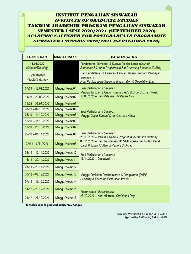 Takwim 2020 Turnitin Thesis