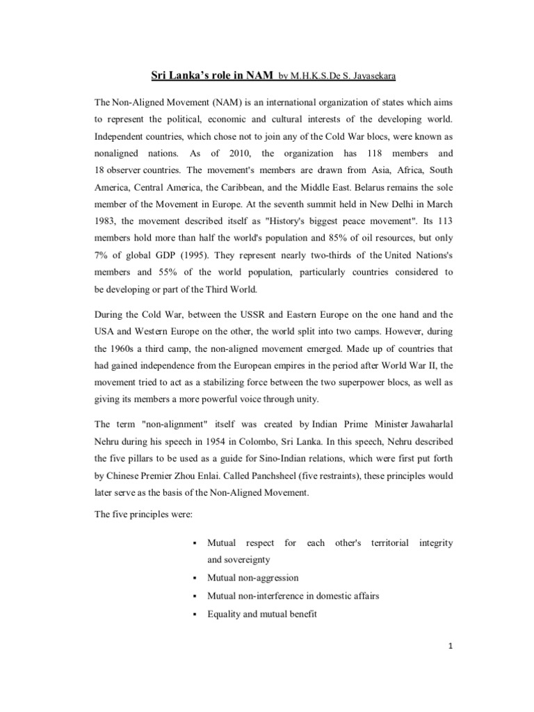 Sri Lanka S Role In Nam Non Aligned Movement International Relations